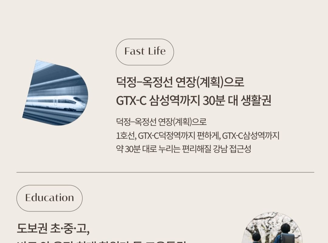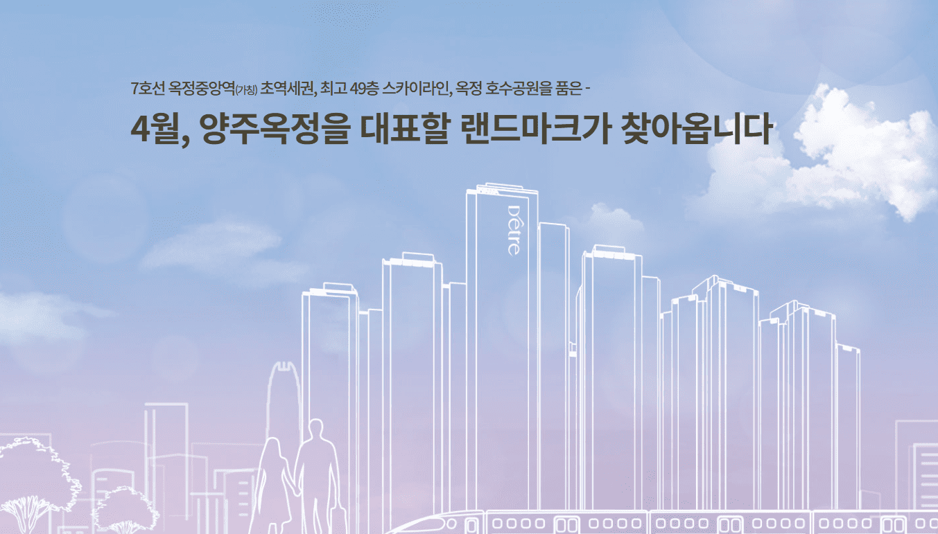 양주 옥정신도시의 중심을 선점하고 시세를 리딩해온 디에트르가 드디어 마지막 노른자위 부지에서 '옥정중앙역 디에트르'로 그 화룡점정을 찍습니다. 7호선 연장(예정)의 초역세권 프리미엄과 옥정호수공원의 힐링 라이프를 동시에 누리는 압도적 입지 가치를 제안합니다.