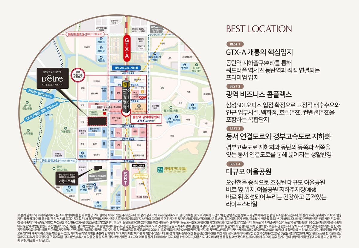 중심상업지구 인근에 위치해 도보권 내 상업·편의시설 이용이 가능하다. 단지에서 예정된 7호선 옥정중앙역까지 약 500~800m 거리로 서울 접근성이 개선될 전망이며, 인근에 호수공원과 학교 등이 배치돼 주거 쾌적성이 높다.